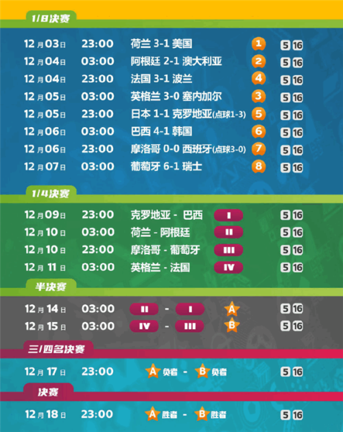 北京时间12月11日,世界杯1/4决赛全部结束,本届世界杯的最终四强也已产生。